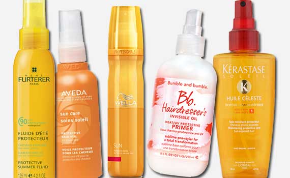 Все повече от любимите ни брандове предлагат продукти за коса, съдържащи UVA и UVB защита, екрани, които създават "щит" около косъма, който абсорбира лъчите и не позволява уверждането на косъма. Rene Furterer Sun Care Protective Summer Fluid е лек спрей, без омазняване, който осигурява хубав, натурален финиш и предпазва косата. Aveda Sun Care Protective Hair Veil заключва влагата в косата, което прави спреят подходящ за склонна към изсушаване коса. Още един много добър едновременно за хидратиране и защита спрей е Wella Professionals Sun Protection Spray. Аз харесвам много праймърът на bumble and bumble Hairdresser’s Invisible Oil Heat/UV Protective, който помага на изтощената и стресирана коса през всеки сезон, но е особено подходящ за ползване през лятото, благодарение на слънцезащитата. Освен отличната слънцезащита, Kérastase Soleil Huile Céleste съдържа и златисти микро частици, които придават на косата забележителен блясък.