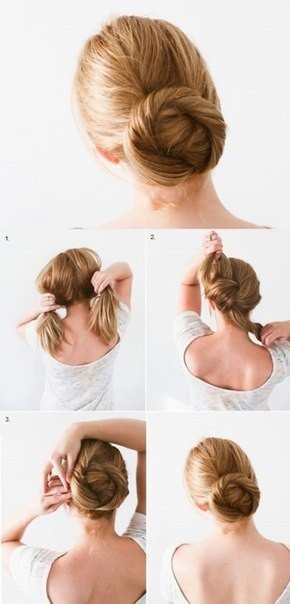Разделете косата отзад на тила на две еднакви части, сякаш ще я връзвате на странични опашки. След това "вържете" двете опашки и увийте краищата на всяка около "възела". Закрепете я с фиби. Получава се много атрактивна прическа с леко небрежно прибрана коса. Ще я направите за нула време!