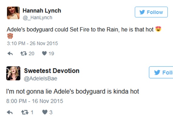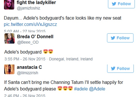 Но вместо да недоволстват, нежния пол(а и не само) от почитателите на Адел прие твърде радушно хубавеца – социалните мрежи бяха буквално залети от съобщения с възклицания по повод сексапилния бодигард.