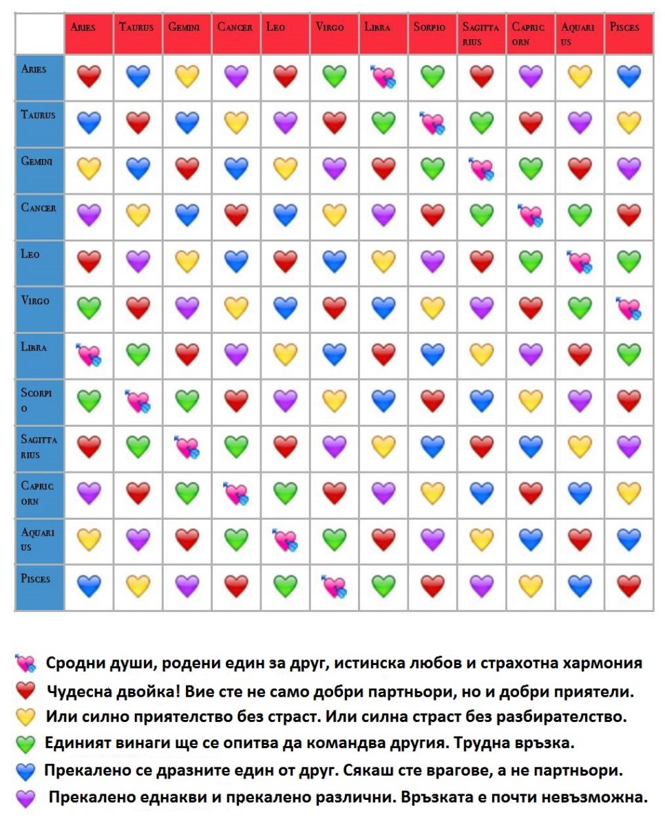 Когато си говорим за връзки, щом има чувства, винаги има и шанс нещата да вървят отлично. Стига обаче да си готов да преглътнеш его, принципи, лично време… Не е лесно двама души да бъдат едно цяло без някой да не е ощетен по някакъв начин. Но пък астрологията не мисли така. Според нея има зодии, които ще бъдат щастливи заедно и то с минимални усилия и компромиси. Има я и другата крайност – комбинации от знаци, които ще останат заедно с цената на много преглъщания и дори сълзи. Проверете вие от кои сте!