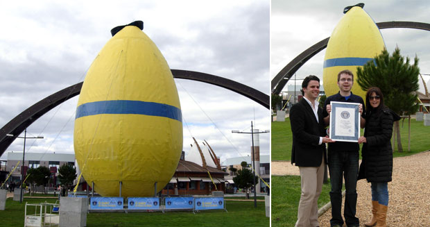 Най-голямото шоколадово яйце, коет отежи цели 7 200 кг. и е високо 19,6 м. Е изработено в Тоскана, Италия през април 2011 г.