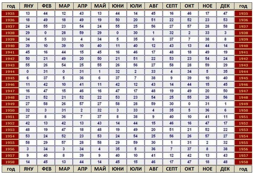 Погледнете в таблицата къде се пресича годината ви на раждане с месеца и какво е числото там. В случая то е 14. Това число събирате с числото от рождения ви ден. В случая – 16 (16 Март). 14+16=30. Полученият сбор отговаря на определено животно. Можете да го видите в последната таблица. За този пример, животното е Вълк.