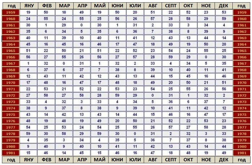 Ако сборът от числото на пресичане и числото от рождения ви ден надвишава 60, то извадете от него 60. Например сборът ви е 68, значи вадите 60 и отговаряте на животното от число 8.