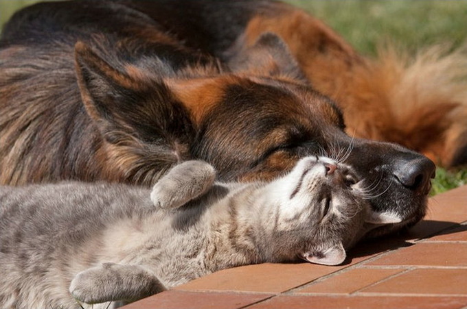 Кой е казал, че кучетата мразят котки? И кой е казал, че котките се страхуват от кучетата?