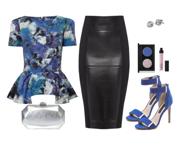 Кожена пола тип молив и флорална блуза модел пеплум. Те ще подчертаят извивките на тялото ви идеално. Съчетайте цвета на обувките и блузата за още по-ефектна визия.